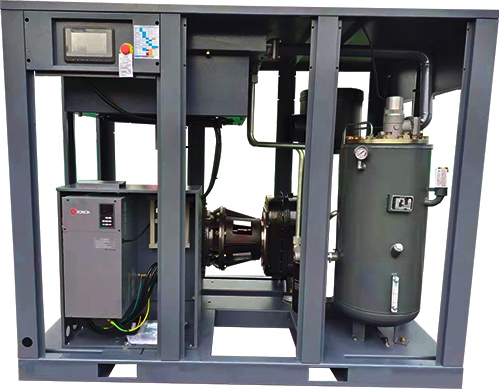 Двухступенчатый винтовой воздушный компрессор снижает степень сжатия на уровне, уменьшая внутреннюю утечку и увеличивая объемный КПД, снижает нагрузку на подшипник, увеличивает срок службы узла. Двухступенчатое сжатие вместо одноступенчатого сжатия, увеличение почти на 15% смещение, может реализовать на 15% больше эффекта энергосбережения.