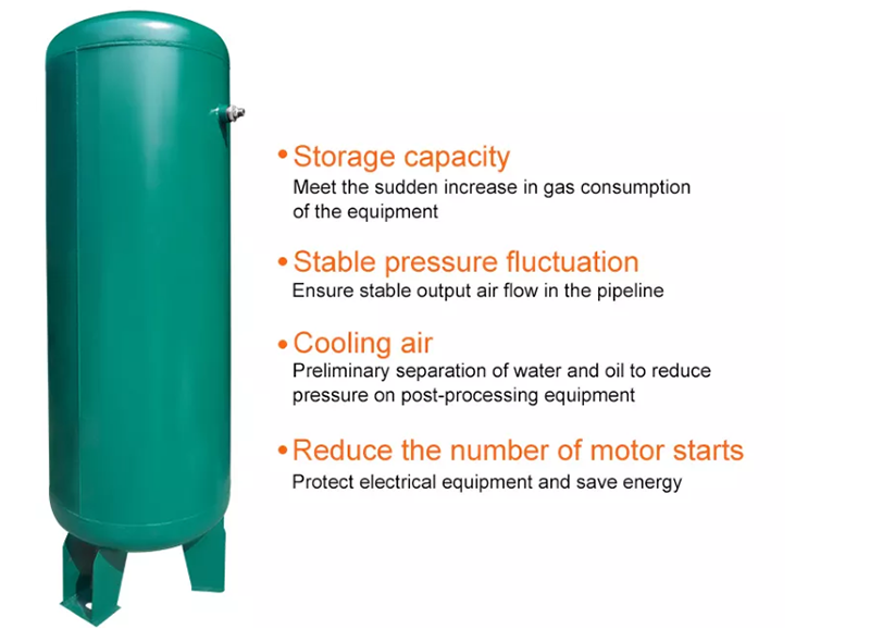 Резервуар для хранения воздуха может избавить вас от необходимости открывать компрессорную систему всего за несколько секунд.Это снижает стоимость использования компрессора.Потребление электроэнергии и затраты на техническое обслуживание также были снижены.Затем, по мере увеличения объема использования, воздух можно хранить.